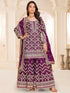 Made from Chinon Silk, this suit features exquisite embroidered work and a flared sharara design.